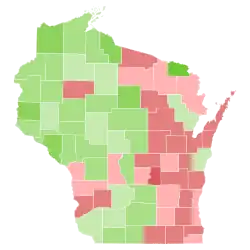 | Trempealeau | 4,189 | 62.82% | 2,446 | 36.68% | 25 | 0.37% | 8 | 0.12% | 1,743 | 26.14% | 6,668 |