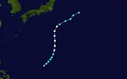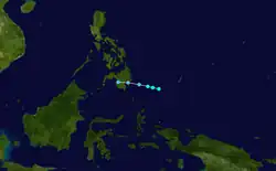 After passing Manila, the storm emerged from the coast of Zambales towards the South China Sea, starting to shift more towards the northwest and eventually north and northeast, all the way moving parallel to the coast of Luzon. The typhoon weakened into a tropical storm and recurved west of the Batanes group of islands and passed through the Bashi Channel south of Taiwan and continued north-eastward towards Miyakojima and the southern Japanese islands and eventually dissipated on 29 December. No data is available on what happened to the system after turning post-tropical.