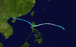 Gertrude formed on August 27 east of the Philippines. It moved west while reaching peak intensity as a Category 2 typhoon. It later weakened and re-strengthened to a Category 1 typhoon. After passing Luzon, Gertrude moved west-northwest and hit China as a tropical storm. It dissipated on September 4.