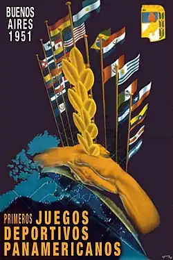The 1951 Pan American Games, officially known as I Pan American Games (Spanish: I Juegos Panamericanos) and commonly known as Buenos Aires 1951, were held in Buenos Aires, Argentina between February 25 and March 9, 1951. The Pan American Games' origins were at the Games of the X Olympiad in Los Angeles, United States, where officials representing the National Olympic Committees of the Americas discussed the staging of an Olympic-style regional athletic competition for the athletes of the Americas.[1]