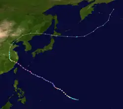 Judy formed on May 28, to the east of the Philippines. The next day, the storm started moving west, then later moving northwest. Over the following days, the storm moved northwest, albeit curving. On June 4, the typhoon hit the Philippines, reaching its peak intensity in Luzon. The storm later curved north, skirting Taiwan. The storm started losing speed, then increased speed on June 6. The storm later curved north, directly hitting Japan. Later dissipating the next day.[2] Judy damaged multiple areas in Japan, causing 37 deaths, 17 injuries, and leading 56 people missing. The storm also destroyed 1802 houses, inundated another 33 thousand, and damaged 139 ships.[3][4]