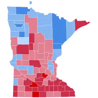 | Anoka | 9,359 | 44.37% | 11,697 | 55.46% | 23 | 0.11% | 13 | 0.06% | -2,338 | -11.09% | 21,092 |