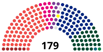 All 179 seats in the Folketing 90 seats needed for a majority |
