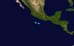 On September 17, a new hurricane was identified just off the southern coast of Mexico with winds of 85 mph (135 km/h). Moving northwestward, the storm eventually made landfall near Acapulco, Mexico at this intensity. Shortly after moving over land, the storm lost its identity.[2]