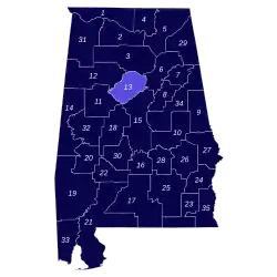 The 1958 Alabama Senate election took place on Tuesday, November 4, 1958, to elect 35 representatives to serve four-year terms in the Alabama Senate. The result an electoral wipeout, as all 35 candidates elected were members of the Democratic Party. Across the 35 districts, only one, District 13 in Jefferson County, was actually at stake in the November general election. As the Democratic Party was dominant in the state, state legislative seats were generally decided at the Democratic primary election. This was the last time an Alabama Senate general election used the original 1901 district map, as district boundaries would be adjusted in July 1962.