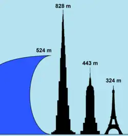 In the past 170 years, Lituya Bay has had four tsunamis over 100 ft (30 m): 1854 (395 ft or 120 m), 1899 (200 ft or 60 m), 1936 (490 ft or 150 m), and 1958 (1,720 ft or 520 m).[11][12]