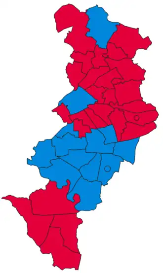 | Labour Party | 89,450 (53.7%) | 26 (65.0%) | 26 / 40