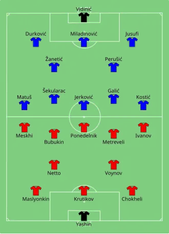 During the additional period, Yashin came out to clear a corner, but Jerković's header went wide. Early in the second half, Žanetić played in a low cross but Galić missed the opportunity to score. In the 113th minute of the final, Ivanov played a cross to Ponedelnik who headed it across the goal and into the corner of the net to give the Soviet Union the lead.[24] Despite a late goalmouth scramble in the Soviet Union penalty area, Ellis blew the whistle to end the match 2–1: the Soviet Union were inaugural European Champions[25]