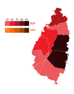 | Saint Lucia Labour Party | 11,898 | 61.45 | 9 | +2 | |