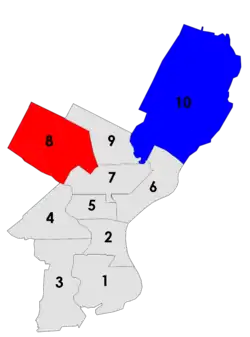 The one surprise result was in the 8th district as Smullen picked up the seat for the Republicans in what the Philadelphia Daily News called "a major upset."[12] The results meant that the Democratic majority on the council was reduced to 13 to 3.[12] All three races showed a roughly five percentage point increase in the Republican vote, in line with the increases in row office elections the previous year.