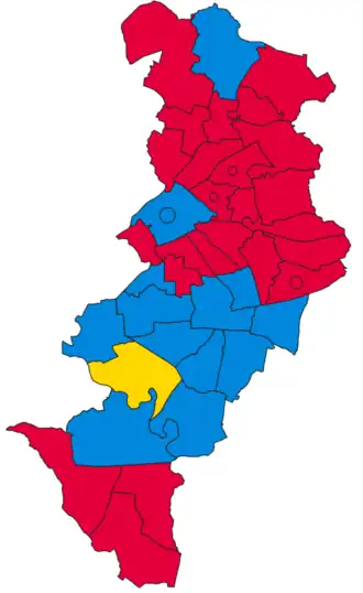 | Labour Party | 72,417 (47.0%) | 27 (64.3%) | 27 / 42
