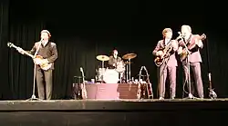 The band's mission is to accurately re-create the 1964 Beatles invasion of America. Members play a set of all early Beatles music, with some middle Beatles thrown in. Sometimes the group's costumes reflect the Beatles' early period, and sometimes members wear replicas of the Shea Stadium concert apparel from 1965. "The concept is performing a show that gives you an idea of what it was like to see the Beatles when they were touring," says Benson.[1] "It's definitely a music gig, but there's an acting element to it," says Work. "None of us is really an actor per se. I probably come closest because I've done some plays, just in community theater. But there's some acting. You need to adopt the body language, the speaking voice. Those two things, I guess, for this kind of a role are two aspects that resemble acting. Everything else is more musicianship and vocal impersonation — singing, I mean."[2] The group separates its life onstage from offstage. "We didn't want to be them, just wanted to portray them," says Work. "No one really considered wearing those boots around all the time or the tight pants or having hair that looked like that. We were musicians before, professional, full-time musicians. We didn't start doing Beatles until we were 30."[2]