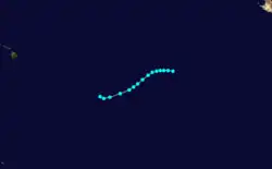 On September 10 a tropical depression was located by the Joint Hurricane Warning Center (JHWC) and was designated Tropical Depression Twenty-two and was heading westward. During the morning of the 12th, the depression passed 240 miles south of the island of Hawaii. It dissipated that night. The depression caused heavy rainfall throughout the Hawaiian Islands during the 12th.[7] The reason that this depression was named 22 is unknown, but it is probably because it was numbered with the Western Pacific storm numbers.