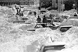 Some sources consider this blizzard to have been "paralyzing" to the city, and the greatest disruption in the city since the Chicago Fire of 1871.[3][10] Plowing was rendered ineffective as the snow fell because the blizzard winds blew the snow back on the freshly plowed roads, stranding vehicles on expressways and arterial streets alike.[10]