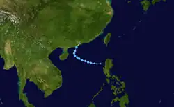 Typhoon Anita originated as a low-pressure area near 10.0°N, 142.0°E in the western Pacific on June 24. Initially moving west-northwest, it intensified into a tropical depression by June 26 and achieved tropical storm status later that day near the Philippine Sea. Anita rapidly intensified, reaching typhoon strength (Category 1) by June 28. It achieved its peak intensity on June 29 with 75-knot winds (87 mph) and a central pressure of 975 hPa near 20.5°N, 119.6°E—approximately 300 km southeast of Hong Kong. The storm maintained this strength while tracking northwest toward the southern Chinese coast.On June 30 at 06:00 UTC, Anita made landfall near Guangdong, China, as a weakening tropical storm. It rapidly deteriorated over land, downgrading to a tropical depression within 12 hours. By July 1, Anita dissipated in Jiangxi Province.