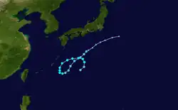 Typhoon Dot formed in the western Pacific on July 19 near the Mariana Islands. Initially classified as a tropical depression, it intensified into a tropical storm by July 20, moving west-northwest. Its path soon diverged from typical storms: Dot executed a rare counterclockwise loop east of the Bonin Islands (Iwo Jima) on July 21–22.