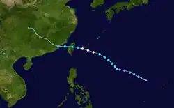 Severe Tropical Storm Fran, designated as "Mameng" by PAGASA, originated in the western Pacific on July 30 near the South China Sea. The storm tracked steadily westward over the next two days. By July 31, Fran intensified, reaching its peak intensity with sustained winds of 70 mph (110 km/h) and a minimum pressure of 975 hPa. Maintaining a consistent westward trajectory, Fran approached China's southern coast by August 2. At 18:00 UTC, it made landfall south of Guangdong Province as a weakening tropical storm. The system rapidly deteriorated over land, downgrading to a tropical depression within 12 hours. By August 3, Fran dissipated inland.