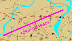The tornado was given a F4 rating on the Fujita Tornado Ranking Scale. The F4 occurrence was likely small in aerial coverage with the majority of the severe damage being classified as either F2 or F3.