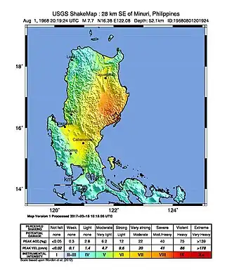 - ^ a b c d "M 7.6 – Luzon, Philippines". United States Geological Survey. August 1, 1968. Retrieved August 27, 2017.