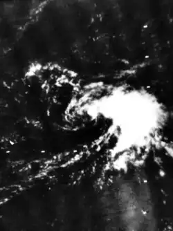 A tropical wave exited the coast of Africa on August 29 and progressed westward, with associated thunderstorms evident on satellite imagery. The system's structure organized, evolving into a tropical depression by September 3. A trough to its north steered the nascent depression northward. Despite the presence of wind shear, the depression intensified as its area of thunderstorms expanded. On September 5, the Hurricane Hunters flew into the system and estimated sustained winds of 45 mph (75 km/h), making it a tropical storm. The continued shear displaced the thunderstorms to the east of the center, as the circulation began moving to the west-southwest. On September 7, the storm weakened back to a tropical depression. On September 11, it passed north of the Lesser Antilles, still as a weak depression. After passing north of Puerto Rico, the depression dissipated on September 13 north of Hispaniola. The remnants continued westward without developing.[21]