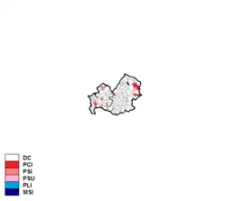 Christian Democracy was by far the largest party, gaining more than three times the share of vote of the Italian Communist Party, which came distantly second.