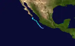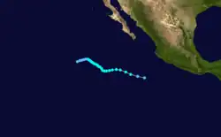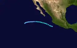 65 mph (105 km/h) Tropical Storm Orlene hit Mexico in eastern Oaxaca on September 8, having maintained a northeast track for its short lifetime.