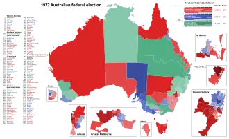 The 1972 Australian federal election was held in Australia on 2 December 1972. All 125 seats in the House of Representatives were up for election, as well as a single Senate seat in Queensland. The incumbent Liberal–Country coalition government, led by Prime Minister William McMahon, was defeated by the opposition Labor Party led by Gough Whitlam. Labor's victory ended 23 years of successive Coalition governments that began in 1949 and started the three-year Whitlam Labor Government.