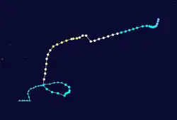 The next system, Cecily, developed near the Cocos Islands on December 11. Cecily moved south-southwestward and peaked with winds of 125 km/h (80 mph). On December 19, the cyclone dissipated.[6]