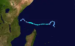 Moderate Tropical Storm Esmeralda existed from December 30, 1973, to January 5, 1974. The storm looped to the southeast of Madagascar, bringing several days of rainfall to Réunion, reaching 222.2 mm (8.75 in).[2]