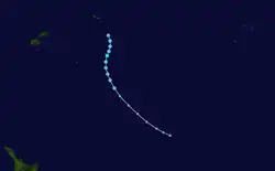 | Peak intensity | 100 km/h (65 mph) (10-min); 980 hPa (mbar) |