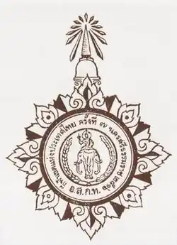 The emblem of 1973 Thailand National Games was a brown circle, with the Phra Boromathat Chedi or Phra That Nakhon on top, the emblem of the Sports Authority of Thailand on the inside, and surrounded by the text
