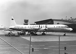 The aircraft involved, manufactured in 1964, was a 10-year-old Ilyushin Il-18V registered as CCCP-75559 with serial number 184007703. It had accumulated 18,358 flying hours in 7,501 flights. It was powered by four Ivchenko AI-20K.[1][2]