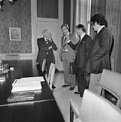 - ^ These were Speaker of the House of Representatives Anne Vondeling (PvdA), Chairman of the Senate Theo Thurlings (CDA) and vice-president of the Council of State Marinus Ruppert