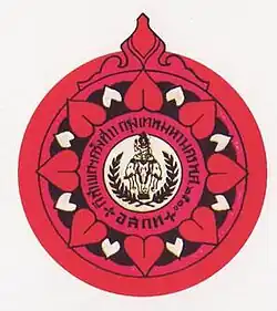 The emblem of 1977 Thailand National Games was a red circle, with the emblem of Sports Authority of Thailand on the inside and surrounded by the text