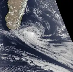 Laure existed from 8 March to 17 March. On March 13, the cyclone passed just east of Mauritius, producing wind gusts of 109 km/h (68 mph) and 65.7 mm (2.59 in) of rainfall.[12]