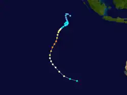 | Peak intensity | 155 km/h (100 mph) (10-min); 960 hPa (mbar) |