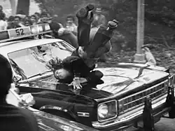 - Michael Haering of the Los Angeles Herald Examiner, for a photo of a woman being struck by a car at a demonstration outside the house of the Shah of Iran's sister in Beverly Hills.[44][45]