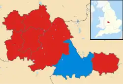 ![]() Map showing the results of the 1981 West Midlands County Council election by electoral division. | |||||||||||||||||||||||||||||||||
