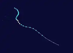 | Peak intensity | 100 km/h (65 mph) (10-min); 985 hPa (mbar) |