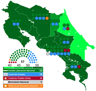 | National Liberation Party | 527,231 | 55.15 | 33 | +8 |