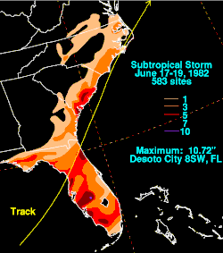 11. ^ a b David Roth (2006). "Rainfall Totals: Subtropical Storm One (1982)". Hydrometeorological Prediction Center. Retrieved 2007-03-28.