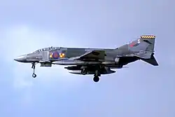 In 1982, the Royal Air Force (RAF) maintained a substantial presence in West Germany under the command of a formation named RAF Germany. RAF Germany's primary focus was the provision of combat aircraft to the Second Allied Tactical Air Force, a NATO formation tasked with the aerial defence of Western Europe.[1] This overall command formation contained a total of 14 individual squadrons across four bases.[2] Included among this list was five squadrons operating the SEPECAT Jaguar, a single seat aircraft utilised in both the strike and tactical reconnaissance roles, and two squadrons using the McDonnell Douglas Phantom, which, at the time, was the RAF's primary air defence interceptor.[2]