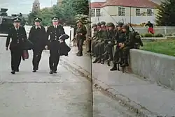 81. ^ "The Royal Marines were allowed, 10 at a time, to return to Moody Brook under supervision and were given ten minutes to pack non-service kit." This Week's Globe & Laurel – July/August 1982 Archived 28 March 2019 at the Wayback Machine