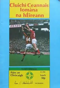 The 1983 All-Ireland Senior Hurling Championship Final was the 96th All-Ireland Final and the culmination of the 1983 All-Ireland Senior Hurling Championship, an inter-county hurling tournament for the top teams in Ireland. The match was held at Croke Park, Dublin, on 4 September 1983, between Kilkenny and Cork.[2] The Munster champions lost to their Leinster opponents for a second consecutive year on a score line of 2–14 to 2–12.[3] Kilkenny were captained by Liam Fennelly.[4]