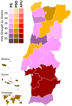 - ^ a b The Portuguese Communist Party (41 MPs) and Portuguese Democratic Movement (3 MPs) ran in coalition.