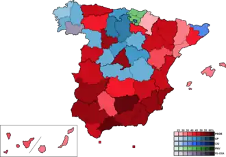Spanish Socialist Workers' Party (PSOE) 7,883,502 43.05 +14.90 23,729 +11,660