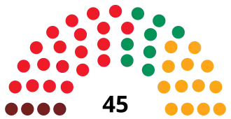 Last election 26 seats, 52.0% 14 seats, 30.2%[a] 0 seats, 3.5%