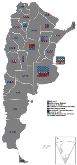 | Tucumán | 214,849 | 39.47 | 2 | 82,879 | 15.23 | — | 6,422 | 1.18 | — | 36,041 | 6.62 | — | 204,089 | 37.50 | 2 |