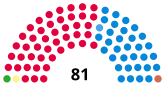 | Party | Votes won[1] | % of vote | Loss/Gain | Seats | % of seats | Loss/Gain | |