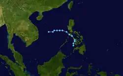 On January 12, both the JMA and the JTWC identified a tropical depression in the northwest Pacific Ocean.[2][3] The depression intensified over the period of a day to become a tropical storm on January 13, when it received the name Koryn from the JTWC. According to them, but not the JMA, Koryn reached typhoon strength on January 15, when it peaked in intensity. The storm then weakened quite rapidly until it became extratropical on January 17, at 0000 UTC.[4]